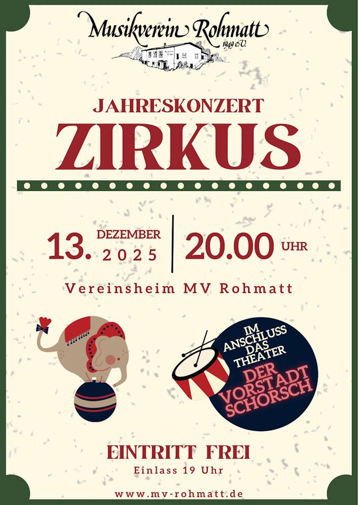 | Jahreskonzert mit Theater | 13. Dezember 2025 | 20.00 Uhr | |